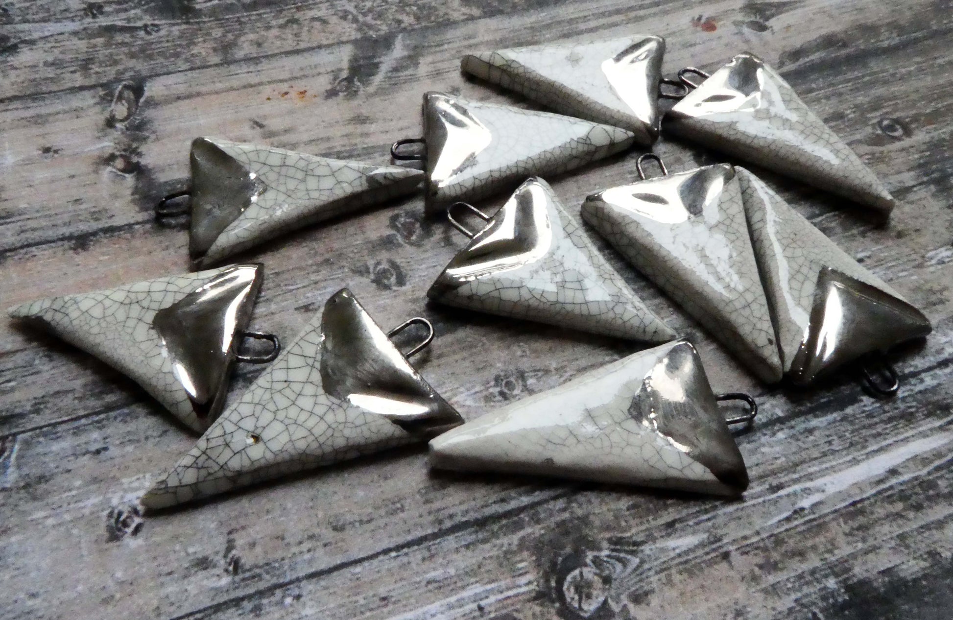 Porcelain Dagger Crackly Earring Charms - Platinum