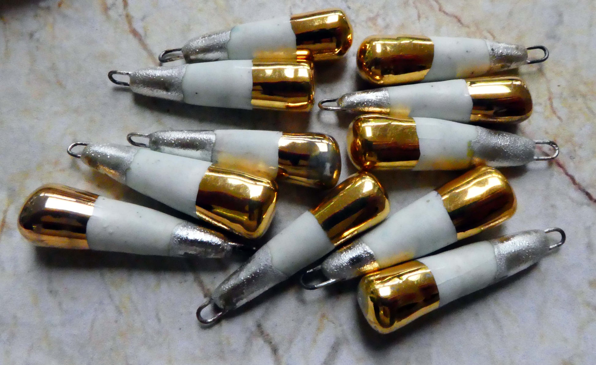 Porcelain Silver and Lustre Baton Earring Charms - Gold